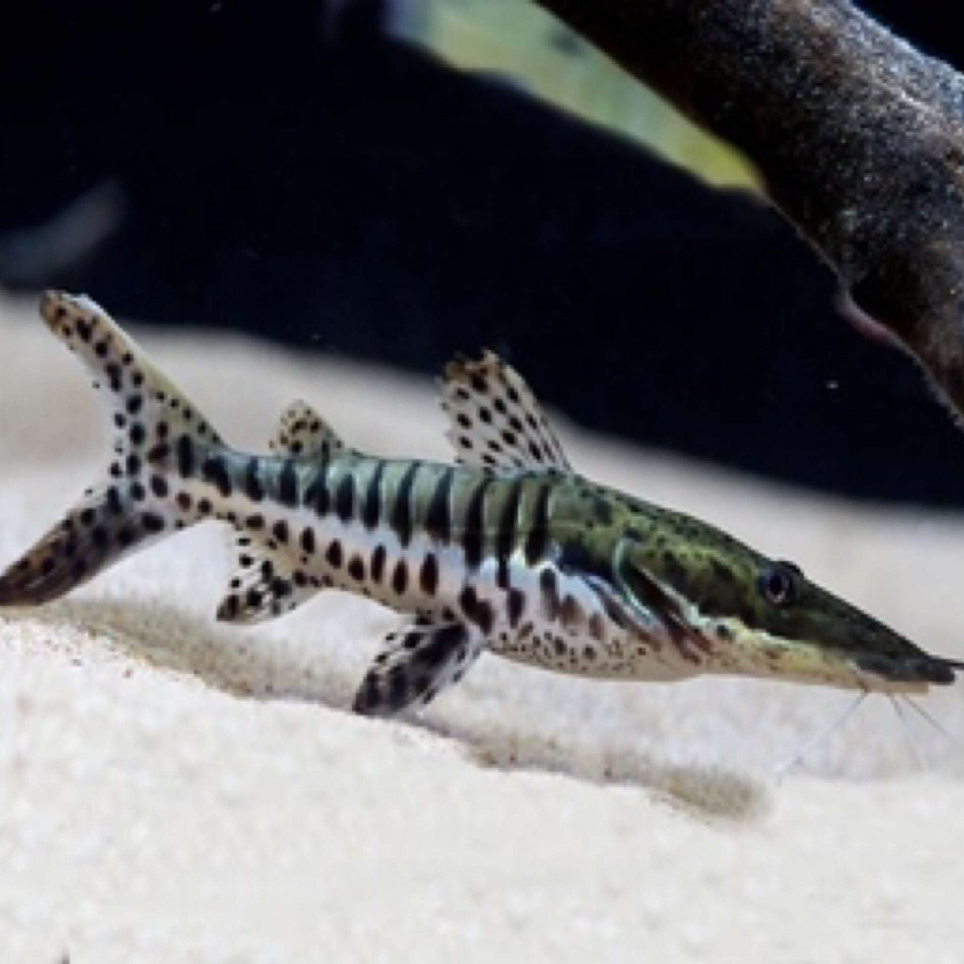 Ang Tiger Shovelnose Catfish ay isang nakamamanghang South American species na maaaring lumaki hanggang 3 talampakan sa pagkabihag. Ang balingkinitang katawan nito ay nagtatampok ng magagandang kulay na pilak na may mga itim na guhit at mga batik, na nagbibigay ng kapansin-pansing parang tigre na hitsura.