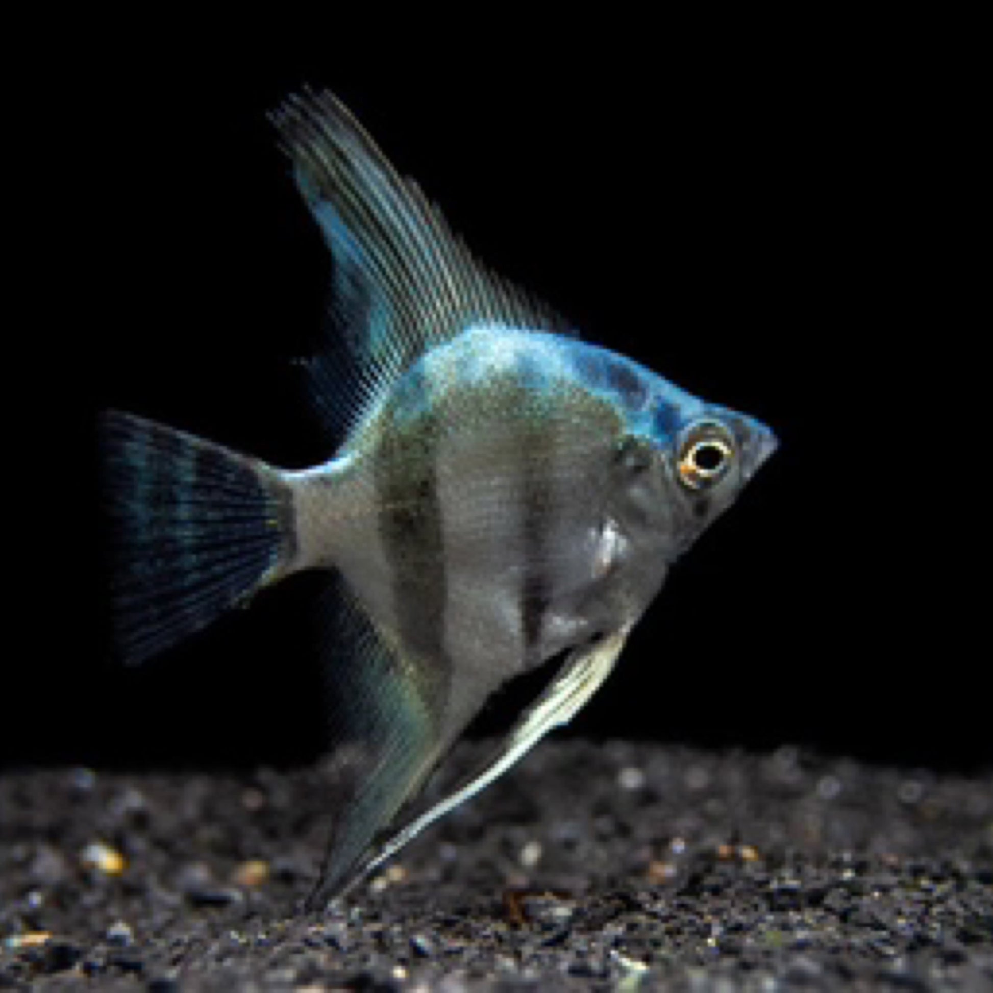 The Belem Sky Blue Angelfish is indigenous to several river systems in Northern South America, but virtually all specimens in the aquarium hobby have been tank-raised for generations. The Belem Sky Blue Angelfish will thrive in a heavily planted aquarium with driftwood and/or rock formations and gentle water flow.